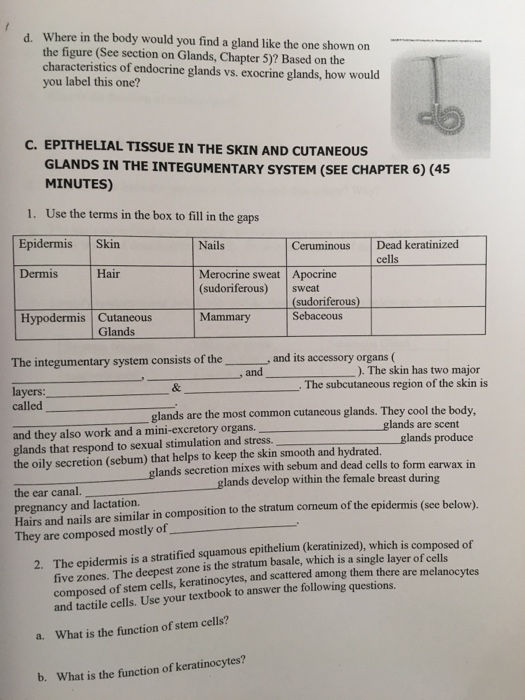 Solved Integumentary System Lab Activity 5 Glands Answer Chegg Com